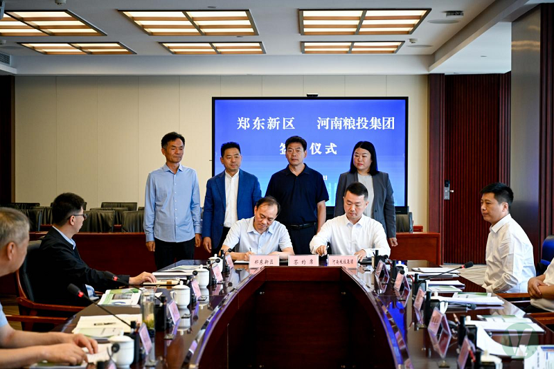 5月8日,河南糧投集團與鄭東新區(qū)管委會豫糧智谷項目簽約儀式在鄭州舉行。省紀委監(jiān)委駐農(nóng)投紀檢組組長魯照印,省農(nóng)業(yè)和農(nóng)村廳市場和信息化處處長崔新麗, 鄭東新區(qū)黨工委副書記、管委會主任陳耀宗,鄭州市人大常委會鄭東新區(qū)工作委員會主任蘇瑩璽, 鄭東新區(qū)黨工委委員、管委會副主任楊寶安,鄭東新區(qū)國資集團籌備組組長李力,河南糧投集團黨委書記、董事長王剛,黨委副書記、紀委書記李在良,副總經(jīng)理馬曉勇等出席簽約儀式。雙方有關(guān)部門負責(zé)人以及項目對接團隊工作人員等共30余人參加簽約活動。